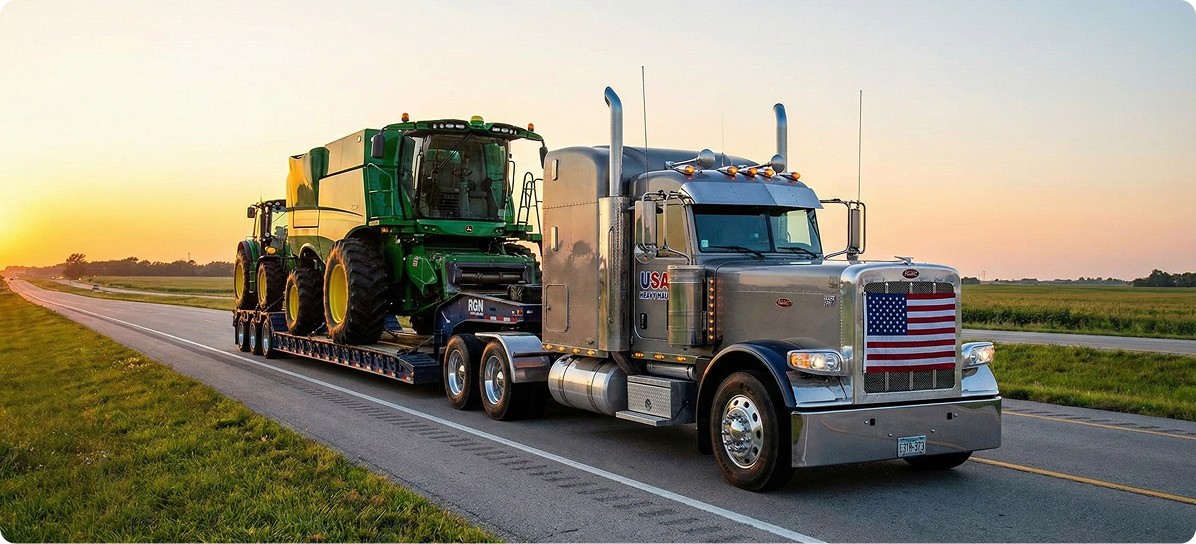 We move tractors, combines, and ag machinery safely to farms and dealerships.